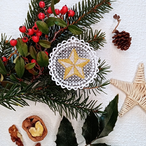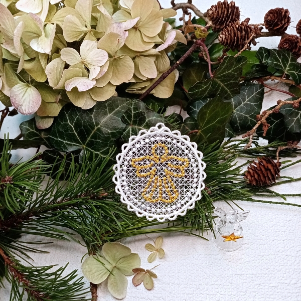 Apparently, this is a free-standing lace so use your favourite water soluable stabilizer. I get best results with Vilene, one layer will do. Or two layears of Solvy. Make sure to use sharp needle. If you experience frequent thread breakage during embroidery and you know you are using quality thread, the reason might (surprisingly) be a dull needle.