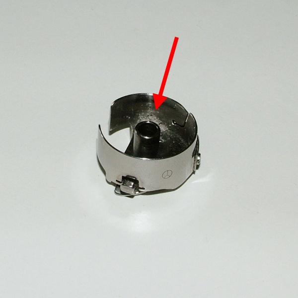 Try taking a good look inside the bobbin case. Over the time, a lot of nearly invisible dust accumulates inside the notch where the thread passes through, preventing smooth thread passage and subsequently ruining the final embroidery. Use a pin to clean it—sometimes the brush from your machine’s accessories won’t be sufficient. You also need to lift the small metal “finger” where the dirt can collect.