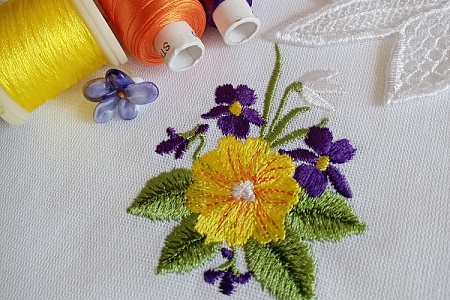 Is it beautiful sunny spring where you live? Have you seen some violets to blossom? If not, you can at least embroider some!